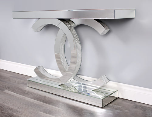 Espara 120 cm W 80 cm H and 36 cm D Mirrored Round Console Table